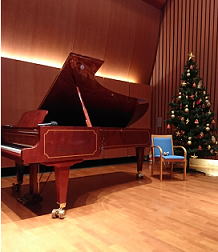 エプタザールご自慢のピアノ、ベーゼンドルファーの重厚さに負けないくらい大きなクリスマスツリー。